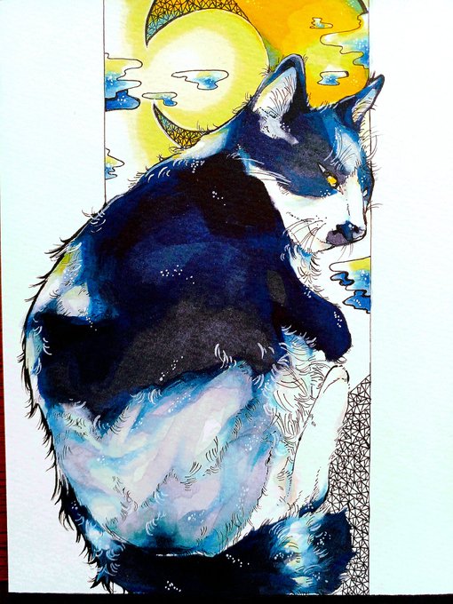 友達にあげた絵 友達の家の猫描いた #イラスト #コピック #色鉛筆 #猫