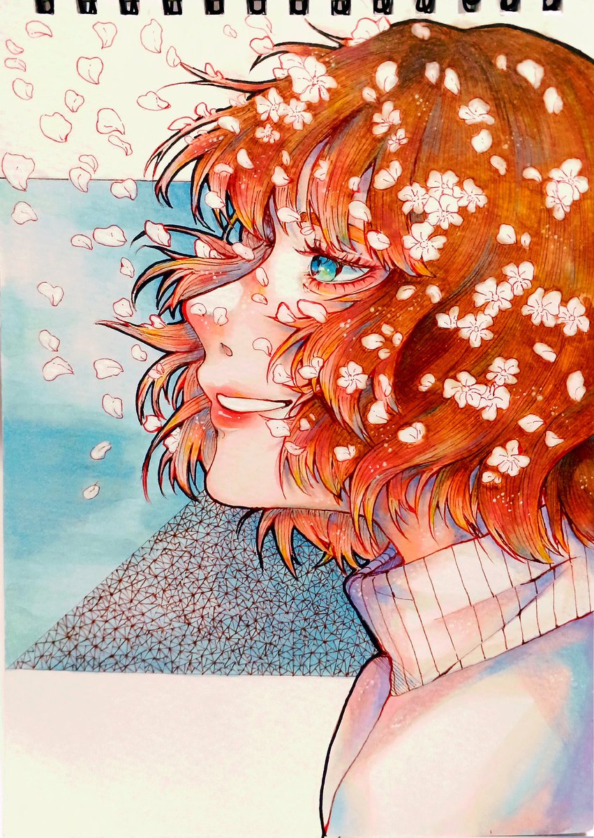じいちゃんばあちゃんにあげたイラスト #イラスト #コピック #女の子 #桜