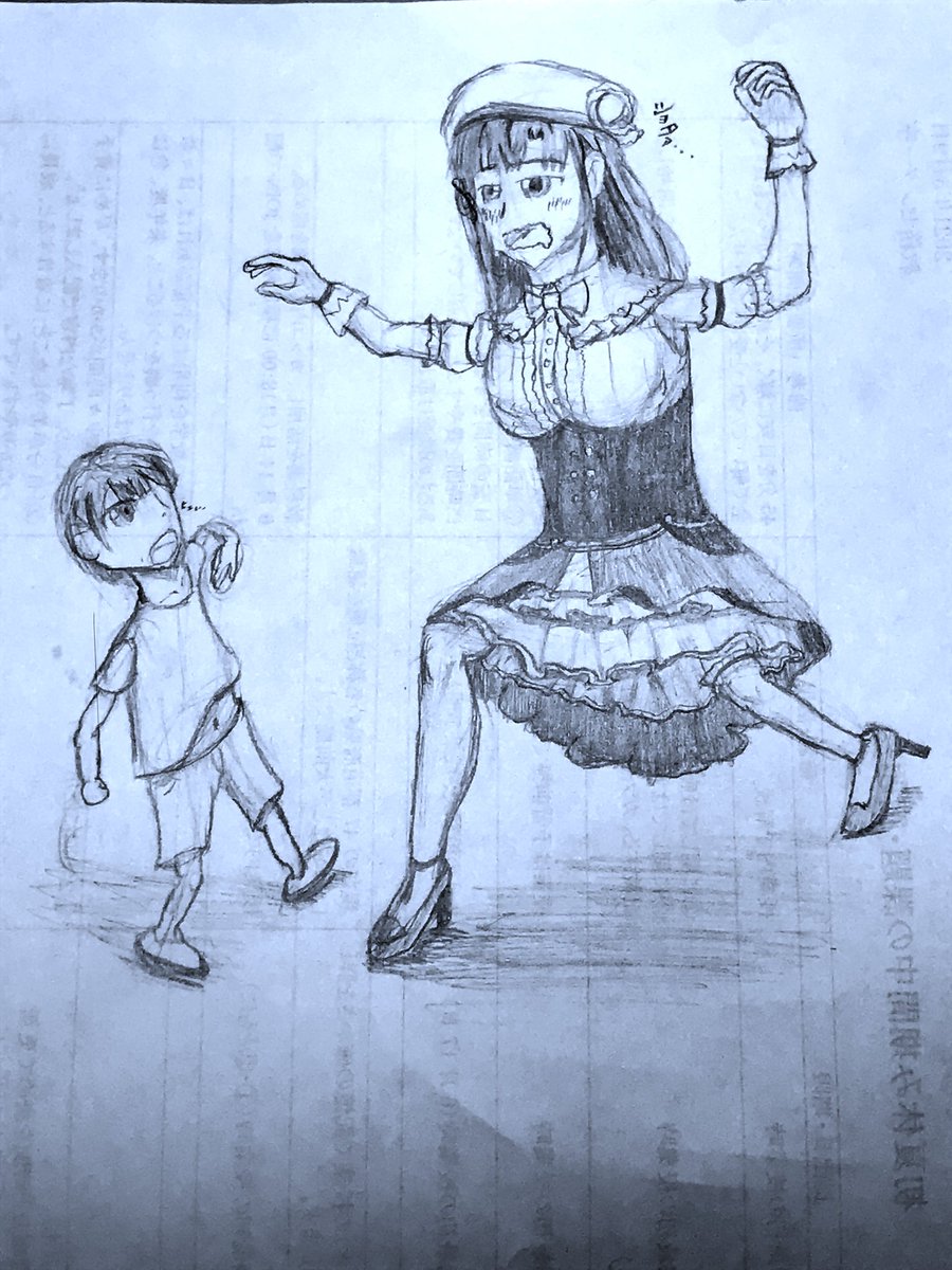4 21 #詩子あーと 8月6日のGartic Phone配信から… 「ショタに欲情する詩子お姉さん」 を自分なりに描いてみました! アナログなので多少加工してますが見えにくかったらすいません🙏 (描こうと思い立った時に近くに裏紙しか無かったのも謝っておきます) 21/08/06 04:18