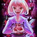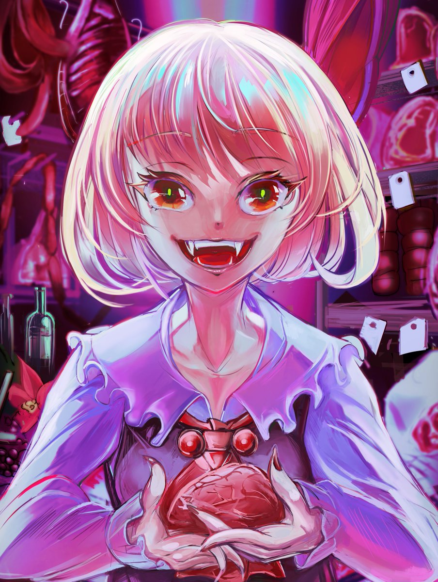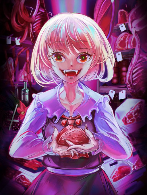 お肉屋さん。豚肉は置かない主義らしい。じゃあ何の肉?牛?羊?鳥?それとも…真相は闇の中である。 #東方 #東方Project #絵描きさんと繫がりたい #ルーミア #春の創作クラスタフォロー祭 #イラスト好きな人と繋がりたい