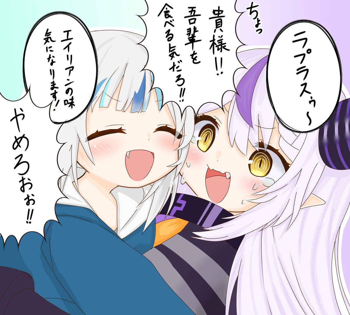 食べようとするサメと 食べられたくないエイリアン #gwart #laplus_artdesu