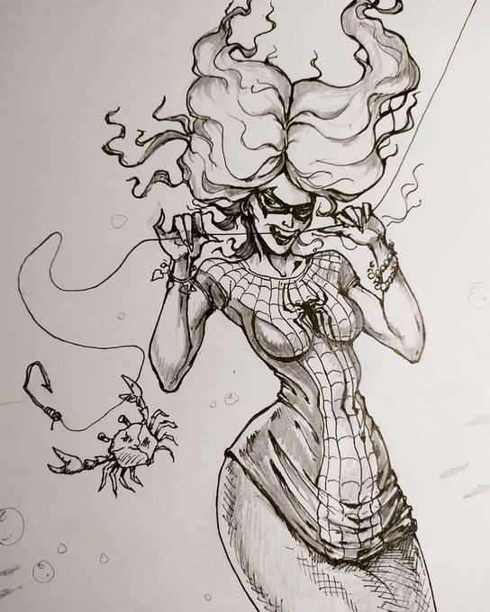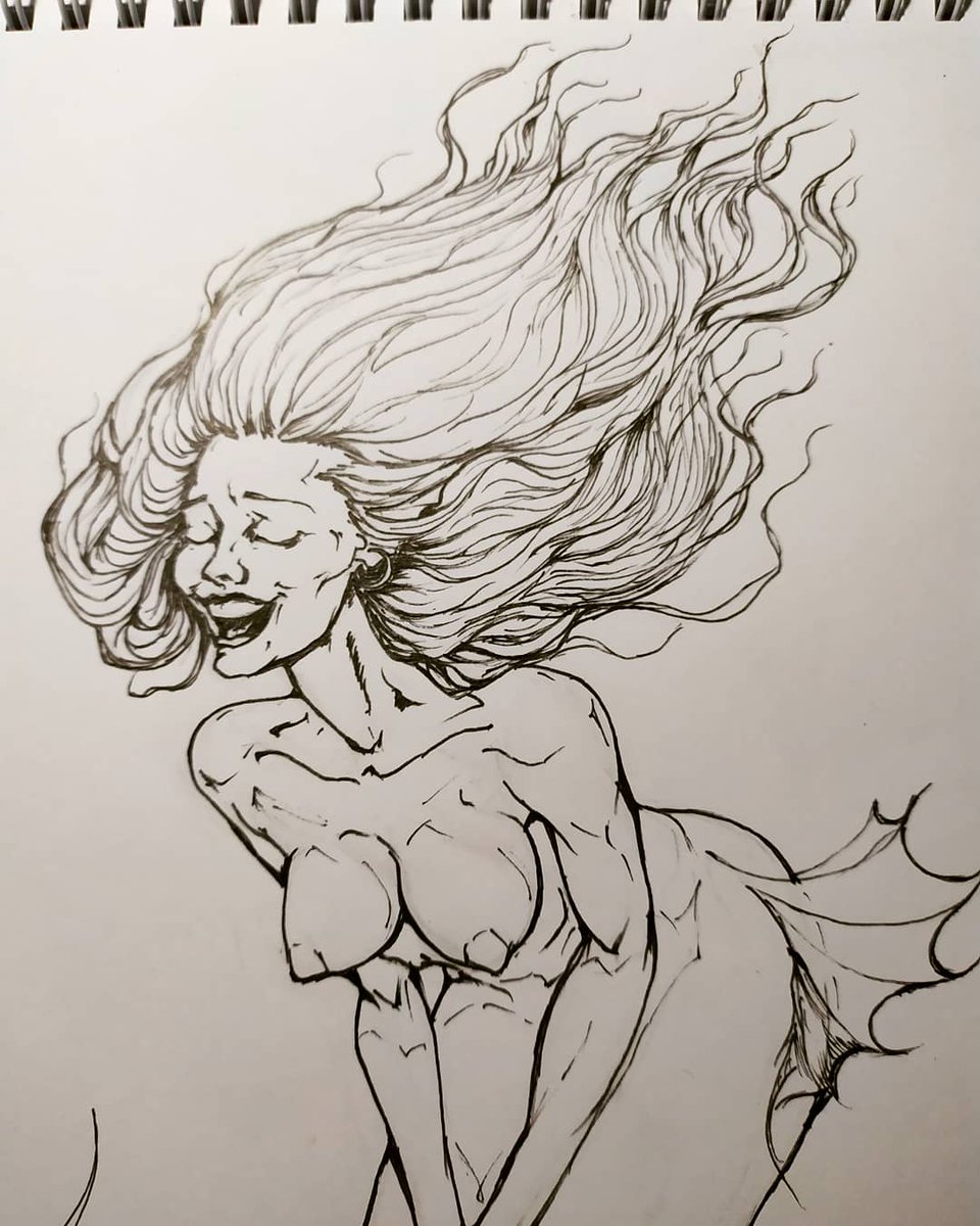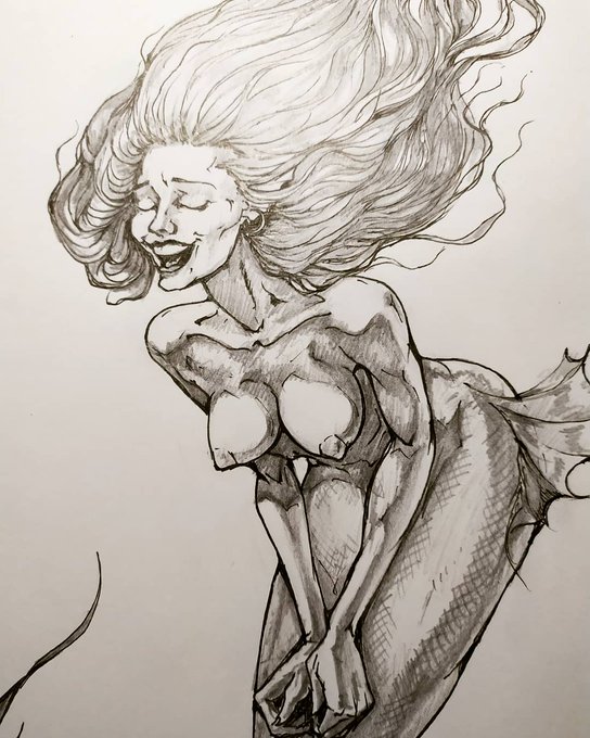 Joined @jscottcampbellart redraw challenge. I'm a big fan of his art. Trying to keep the great dinamic of his work. But mermaids still are on my mind. #drawthisinyourstyle #redrawasm607 #jscottcampbell #mermay2021 #mermay #mermaid #inkdrawing