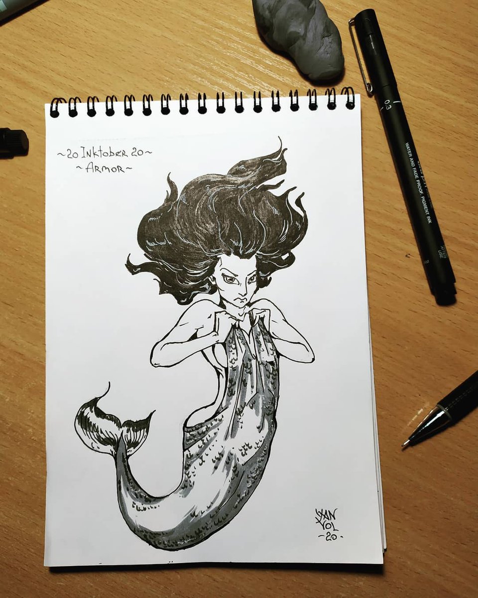 Mermay. Eager. I think a cute little mermaid, who is very eager for something, can become quite dangerous. #mermaid #mermay #mermay2021 #eagermermay #pencildrawing #inkdrawing #inkart #inksketch #drawineveryday #mermaiddrawing