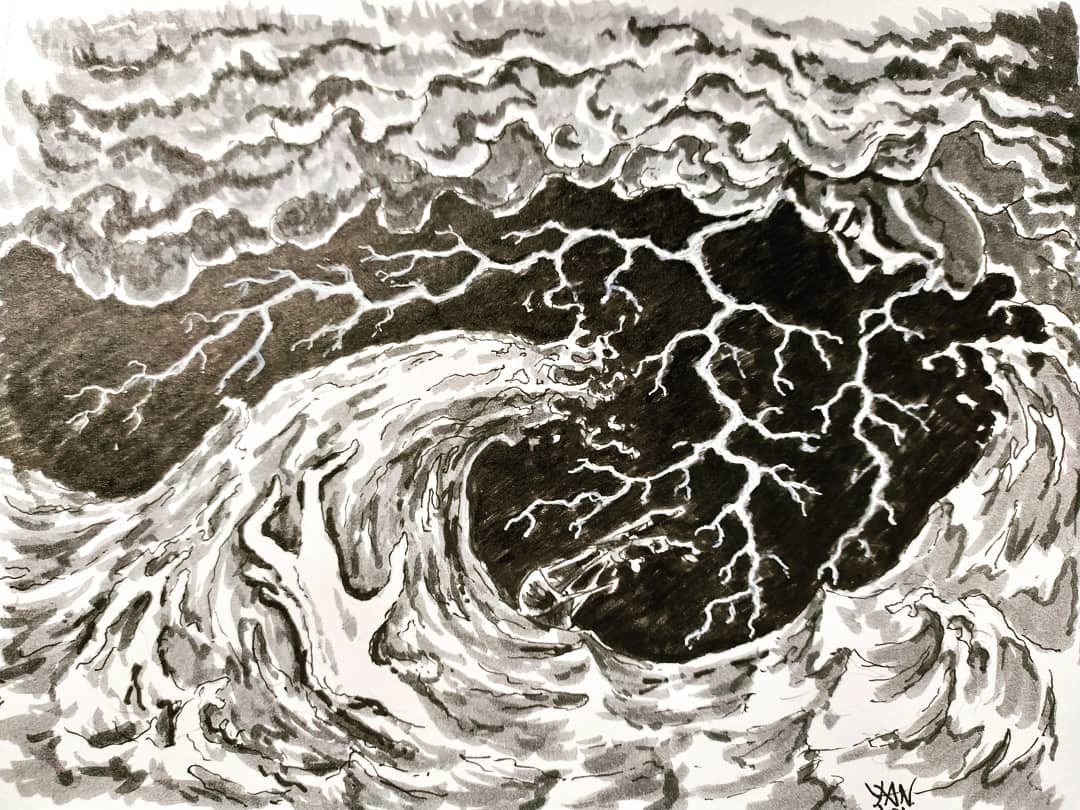 Inktober 2020. Day 17. Storm. #inktober2020 #inktober #inktoberchallenge #inktoberart #inktoberstorm #inkartwork #inkart #inksketch #inksketchbook #sketchoftheday #sketchbookdrawing #sketchbook #storm