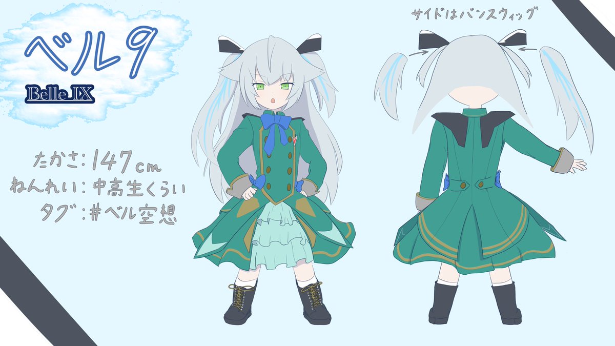うちの子の簡単な資料っぽいの描いてみました! ベル9ってクソガキです。 かわいがってくれるとうれしいです! #ベル空想