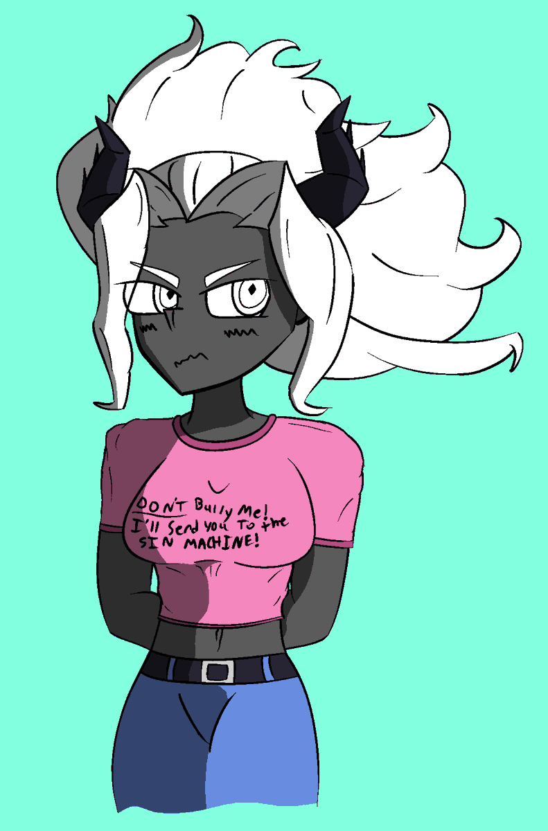 So she gores ONE couch (and someone she was cuddling a little) by accident and she has to wear foam, but cerberus has chewed on every pillow in the house and she gets away with it? I don't think that's fair #Helltaker #Helltakerfanart