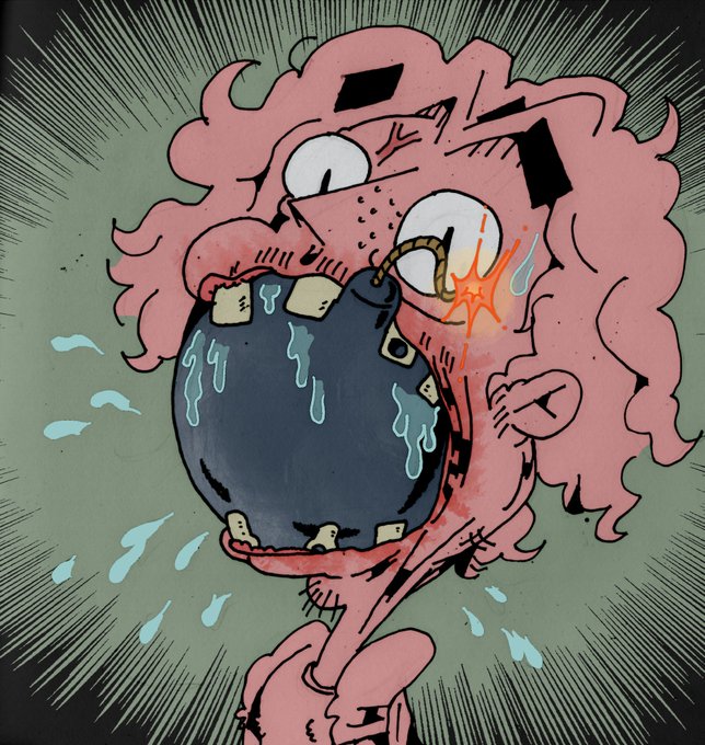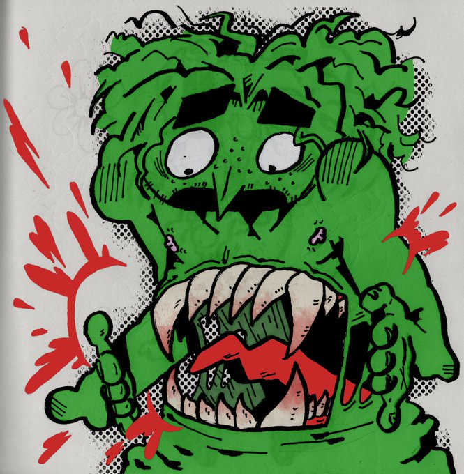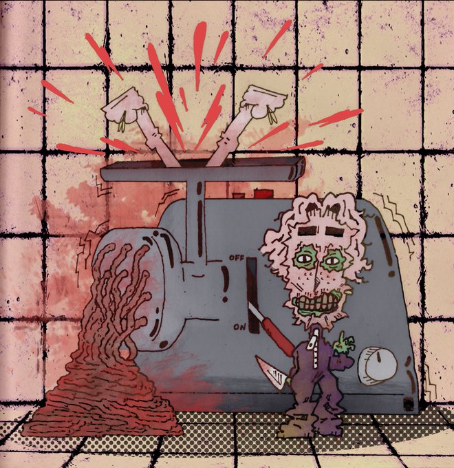 #inktober 14 Dripping off the meat grinder . #gore #bodyhorror #bloody #terror #horror #cartoon #halloween #comics #quadrinhos #desenho