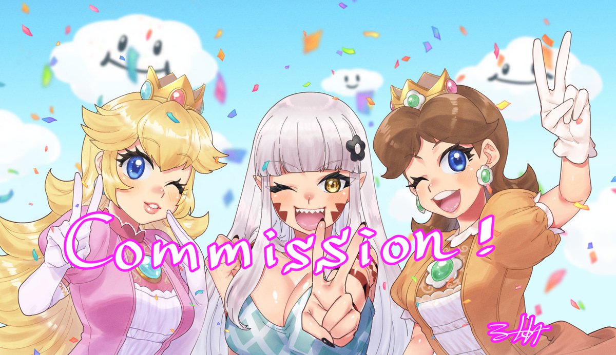 Skebにて、依頼者のOCさんとピーチ姫デイジー姫を描かせていただきました~! ご依頼ありがとうございました!! skeb.jp/@Vagryu
