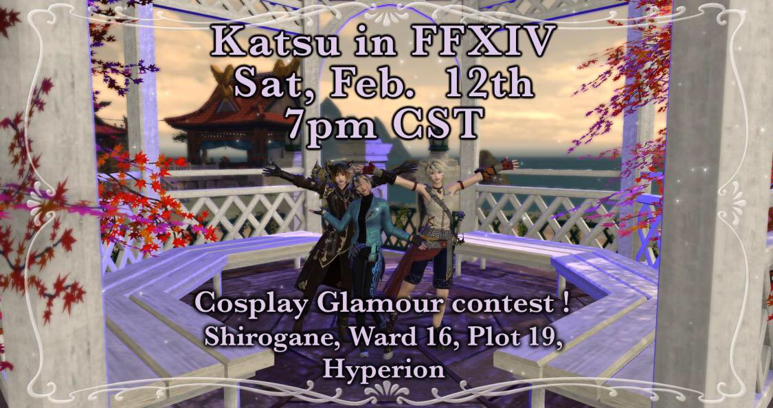 Ayo play final fantasy? Miss conventions? Join us for Katsu in FFXIV! We have our own Gaylord set up (Gazebo included), and will be hosting a cosplay glamour contest for those interested!! #ffxiv #FinalFantasyXIV #katsucon