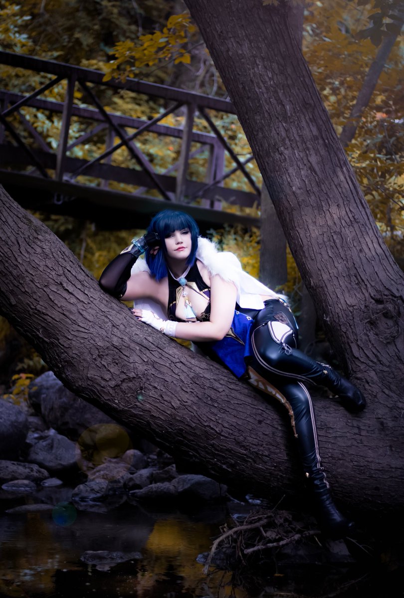 Twitter sees first Dont climb trees in 6 in heels kids. Shout out 2 da rain for looking cool and for @jellyfishadel for helping me push buttons and also pick up my earrings every two seconds #genshinimpact #yelan #yelancosplay #genshinimpactcosplay