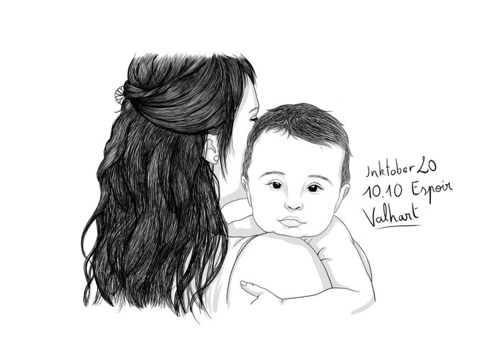 inktober jour 10: espoir Portrait d'une mere tenant son enfant. #inktober2020 #inktober #portrait #mother #baby #bebe #blackandwhite #kawai #beautiful #sweet #art #drawoftheday