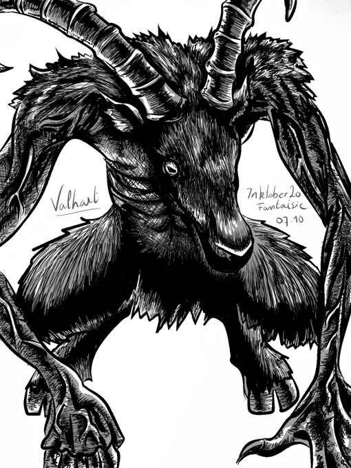 inktober jour 7: Fantaisie. Fanart de la serie berserk, ma main s'en souvient encore de toutes ces hachures x) #inktober2020 #ink #inktober #inktoberchallenge #berserk #fanart #goat #berserkmanga #Kentaro #kentaromiura