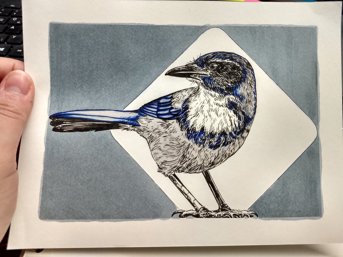 #inktoberday13 - Western Scrub Jay I kinda rushed this one.. dunno. Also, added some blue ink to make the blue parts pop a little. It was a test. #inktober #inktoner2019 #bird #art #traditionalart #westernscrubjay #americanwildlife #birdsoftheUS #corvid