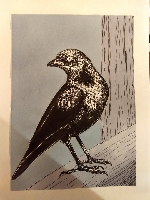 #inktoberday26 - Brewer's Blackbird These birds are curious. #inktober #Inktober2019 #ink #drawing #bird #brewersblackbird #blackbird #americanwildlife #birdsoftheUS