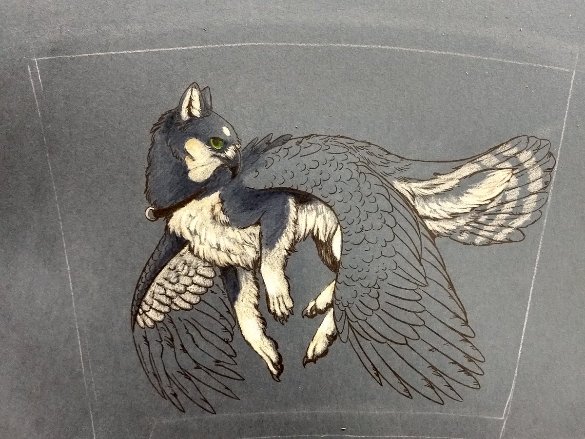 Does this count as #Inktober? Trying to make myself a new picture for a tumbler I have. I think the polychromos really pop on this dark blue-ish grey paper! Me gusta! #gryphon #art #traditionalart #tonedpaper #inktober2019 #icantdrawpaws #goodboy