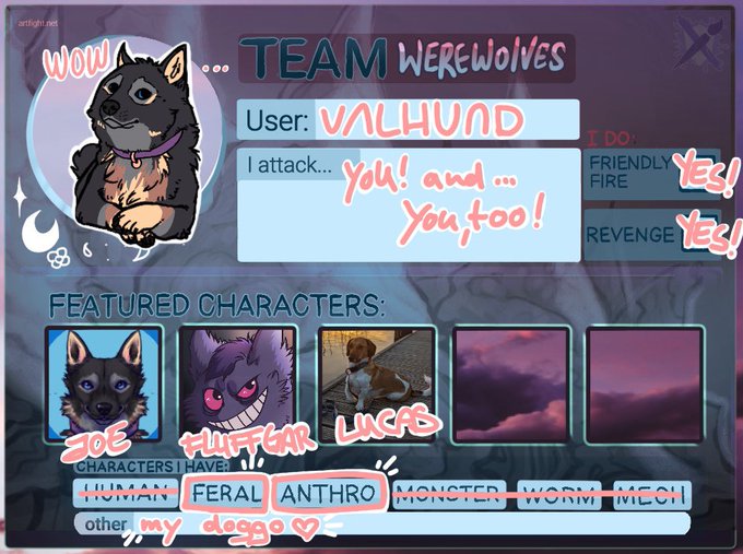 I’ll try again this year. Probably won’t be able to do art during the week, tho… :‘) #artfight2023 #teamwerewolves
