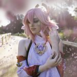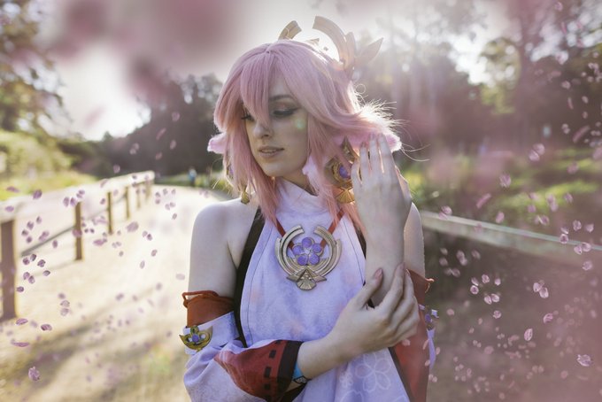 🌸I taught myself a new lil skill editing these photos and although they’re not perfect I need to acknowledge I’m still learning lol.🌸 Hardware files by @dangerousladies printed and painted by me #yaemiko #genshin #genshincosplay #cosplay #genshinimpact #yaemikocosplay