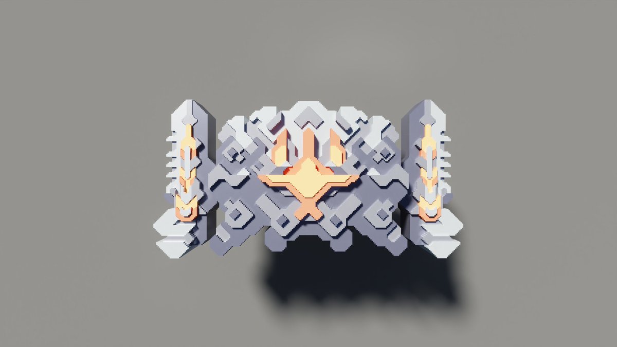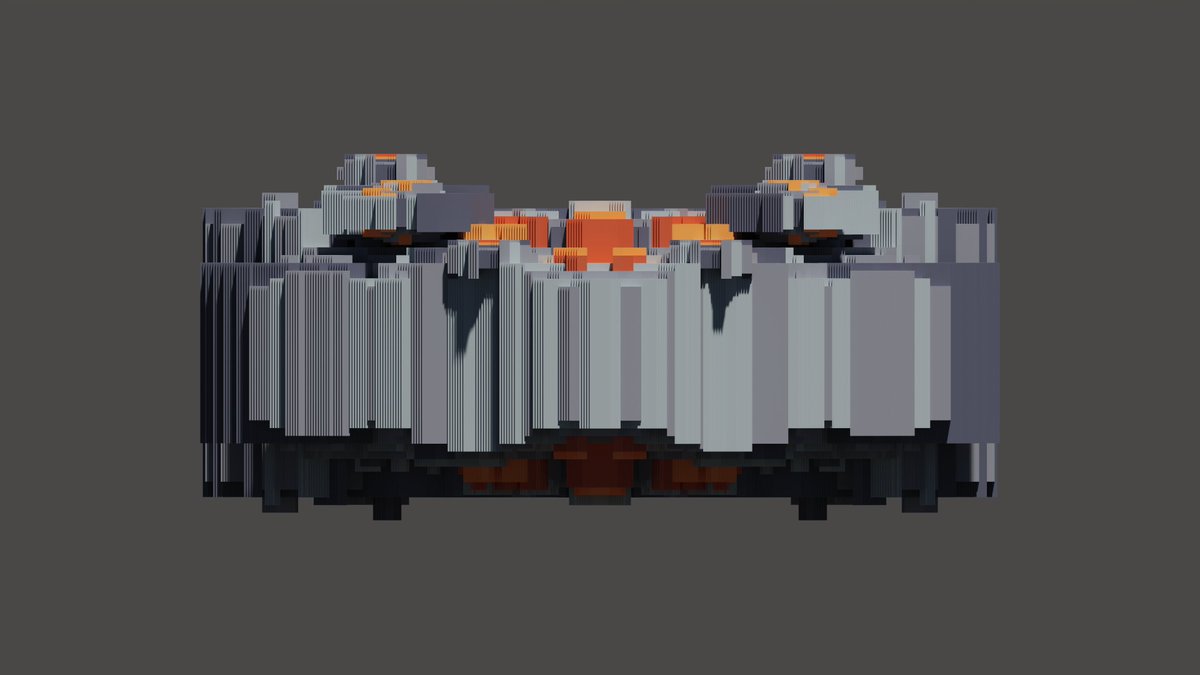 < Eclipse flying fortress > Another unit from mindustry :) this one is a flying fortress with 2 smaller rail guns and 4 turrets Please share, like and leave a comment (ง^ᗜ^)ง #magicavoxel #voxelart #voxel #ship #ボクセル #fortress #mindustry