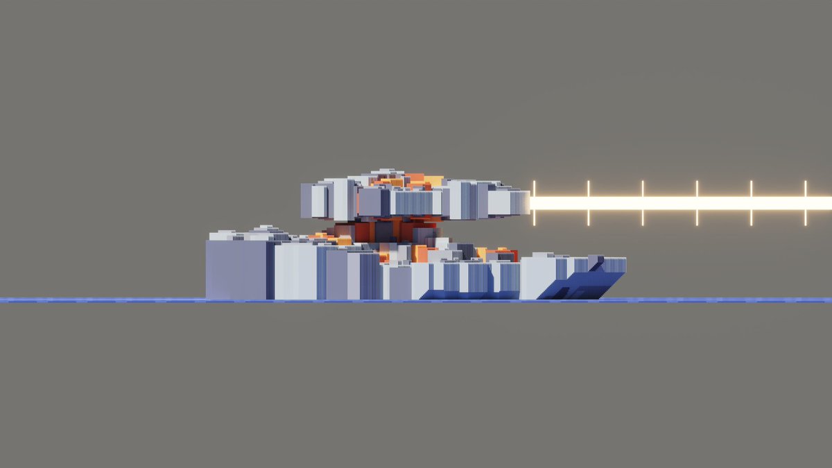 < Omura warship > Another unit from mindustry :) this one is a big warship with a heavy long range rail gun Please share, like and leave a comment (ง^ᗜ^)ง #magicavoxel #voxelart #voxel #ship #ボクセル #warship #mindustry
