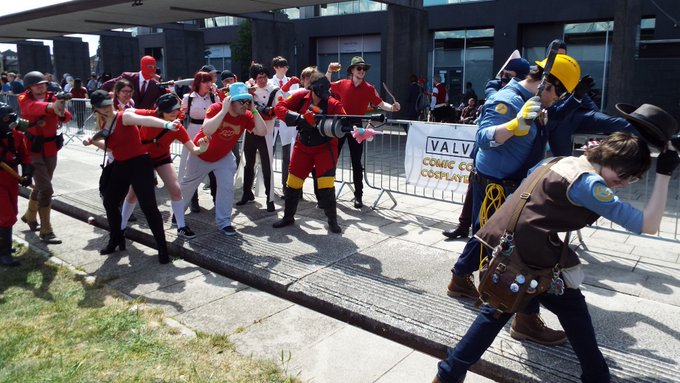 Yesterday was fantastic, a big thank you to everyone who could make it. We're doing the same again, 2PM outside the west entrance down the stairs by the pillars. #MCMlondon #MCMComicCon #TF2 #Valve #Cosplay