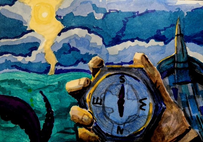 Even in a storm, you can find a ray of light, the main thing is that there is a compass. And the battle with the kraken is part of the way #inktober2021 #inktober2021day16 #Inktober #drawing #draw #painting