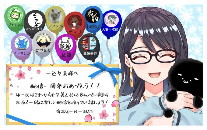 協賛レース、記念切り抜き、skebイラスト 三段構えのサプライズ、驚いて楽しんで貰えたかな? 改めて一周年おめでとう!そして配信を始めてくれて、今日まで頑張ってくれてありがとう! これから先、何度でも周年のお祝いしようね! #一色夕美 #かまってゆーみん