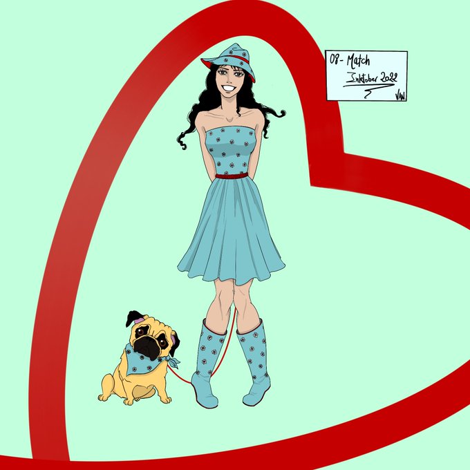 08 - Match #inktober2022 !! @inktober !! #inktober2022match #match #inktoberday8 #inktober #art #drawing #digitalart #digitaldrawing #digital #digitalillustration #digitaldrawings #pretty #inking #matchingoutfit #heart #dog #cutedog #pug #flowers