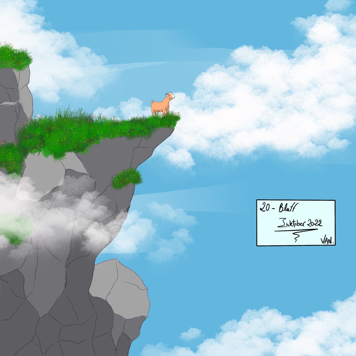 3 8 20 - Bluff #inktober2022 !! @inktober !! #inktober2022bluff #bluff #inktoberday20 #inktober #art #drawing #digitalart #digitaldrawing #digital #digitalillustration #digitaldrawings #inking #pencil #bluesky #cutegoat #flower #hightinthesky #greengrass #rock #cloud #thereisnobody 22/10/20 23:22