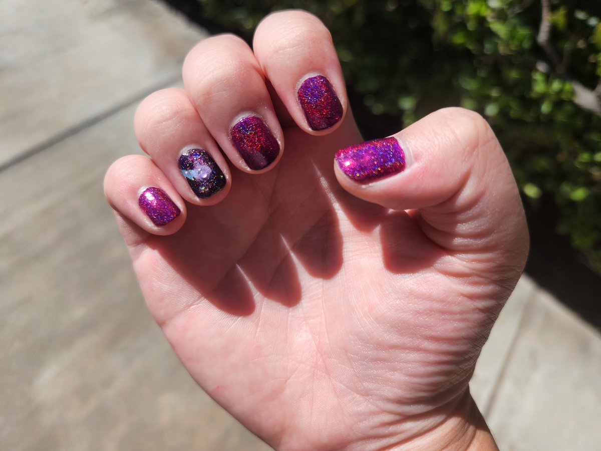 #VioletAtelier I made Uki-themed nails! It's a little hard to see, but the nail with the Stargazer on it is a gradient meant to represent his hair! I might try taking a better picture another time because the lighting did not do these nails justice ^^'