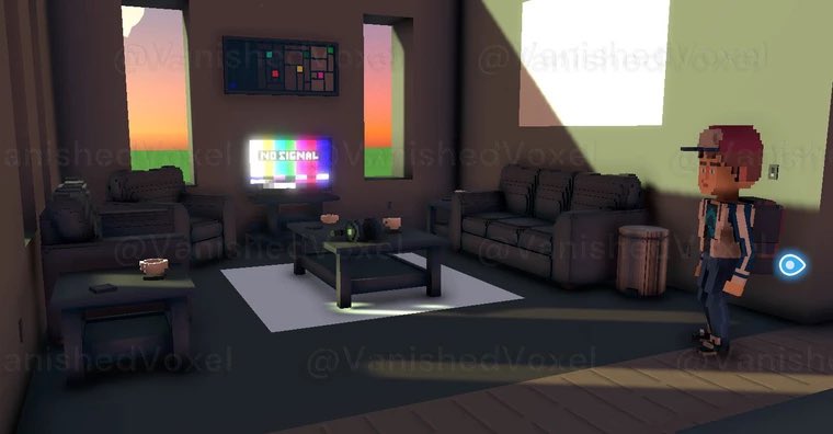 Testing asset scale in a quick and dirty greybox room. #TheSandbox @TheSandboxGame #voxelart #voxEdit