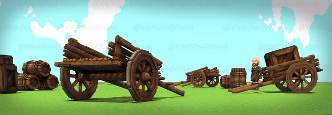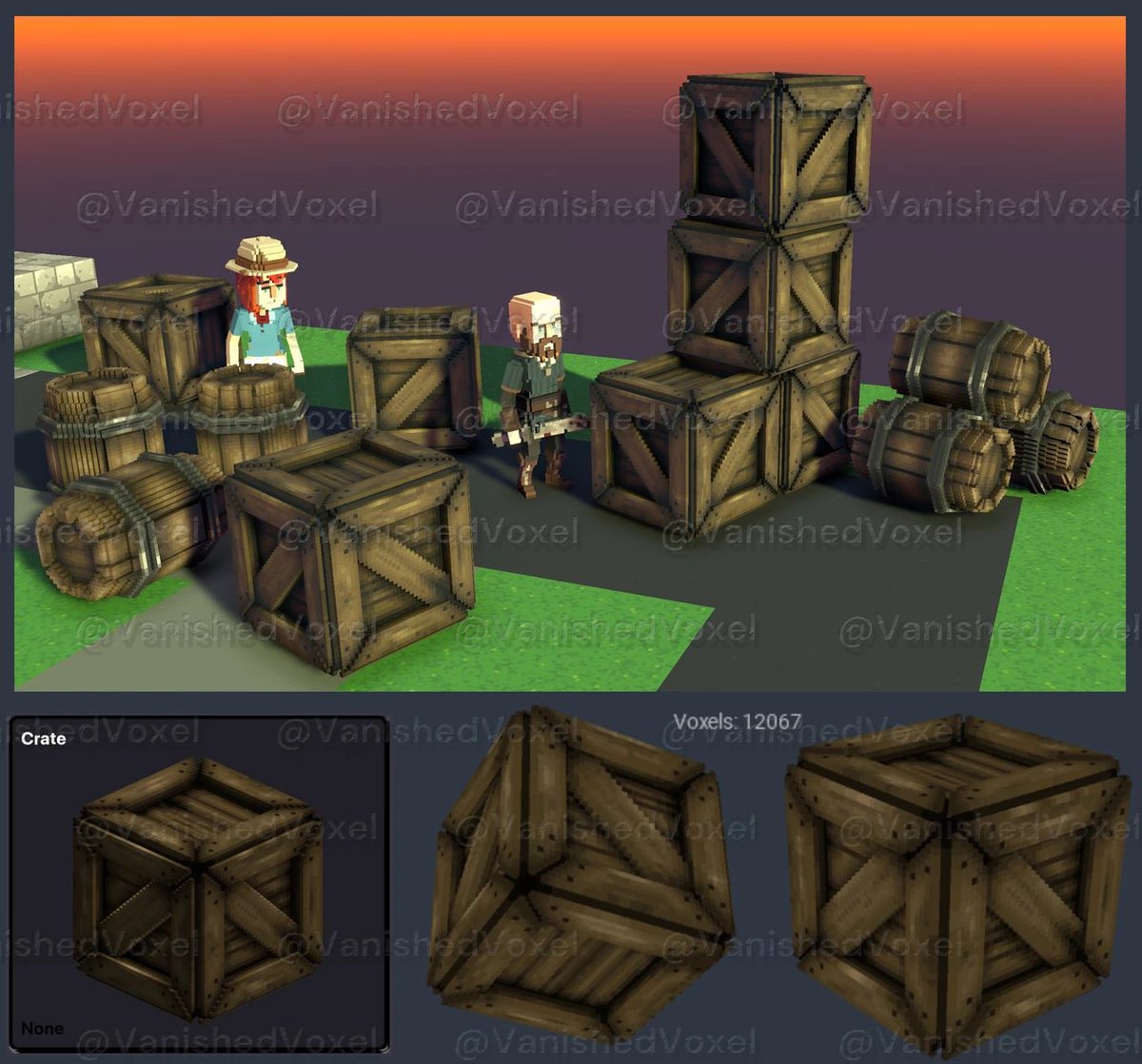 First attempts at some wooden looking assets. Painted & detailed in #voxEdit. Screenshotted in #SandboxMaker. #TheSandbox @TheSandboxGame #voxelart