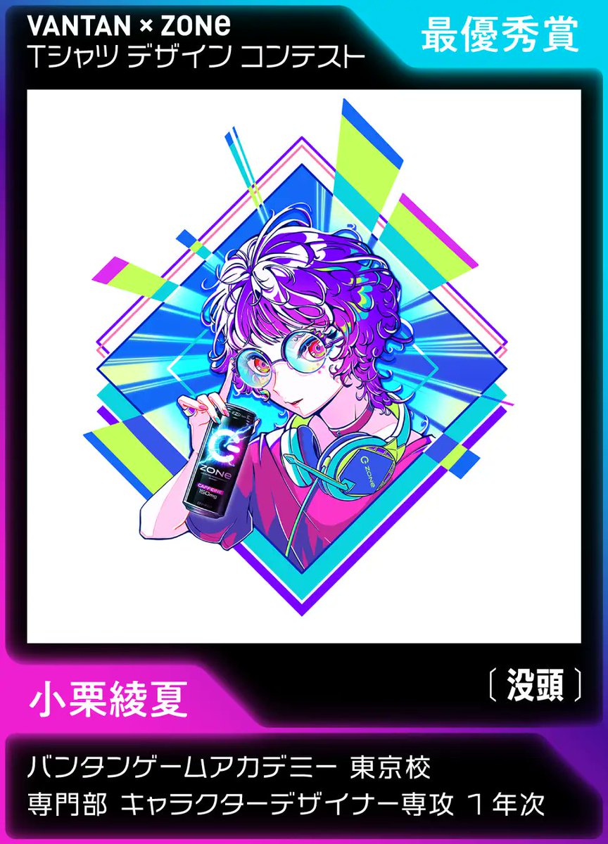 ⚡VANTAN×ZONe(@zone_energy_jp)Tシャツデザインコンテスト⚡ 【1】VANTAN在校生を対象とたZONeをテーマにTシャツデザインコンテストの審査結果発表されました❗ 👑最優秀賞👑 「没頭」バンタンゲームアカデミー 小栗綾夏さん @solte_illust @Red_Vantan #vantan #ZONeエナジー #ZONeアート