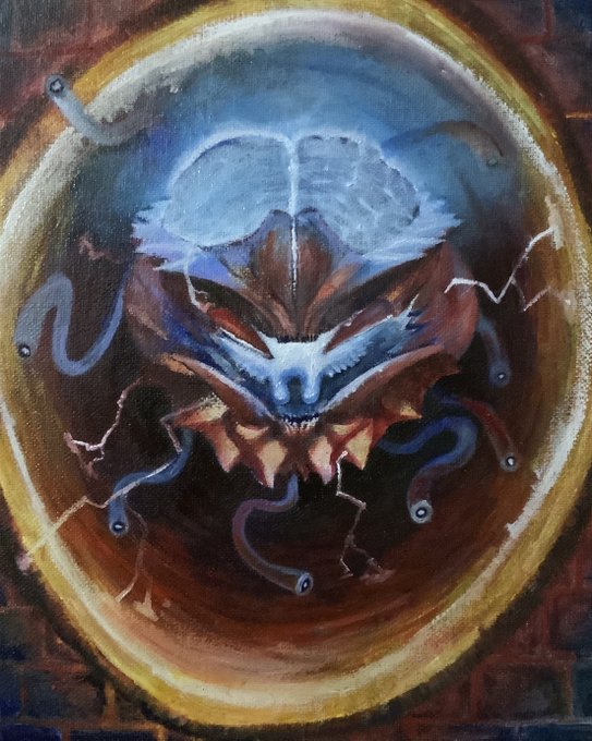 Illathid Artificer - Acrylic on Hardstock Art board Morning warm up I thought id share. #dnd #dndart #mindflayer #monster #lovecraftian #artistsontwitter #painting #illathid #acrylic #art