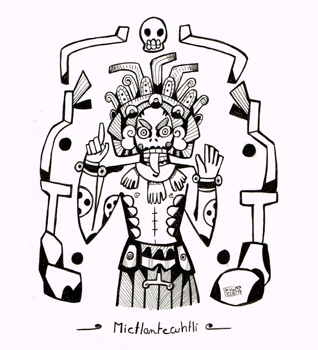 Day 20 #inktober #Inktober2019 Death Divinities & Psychopomps. Mictlantecuhtli, Aztec God of Death. You can follow my work on instagram.com/varane_willmare
