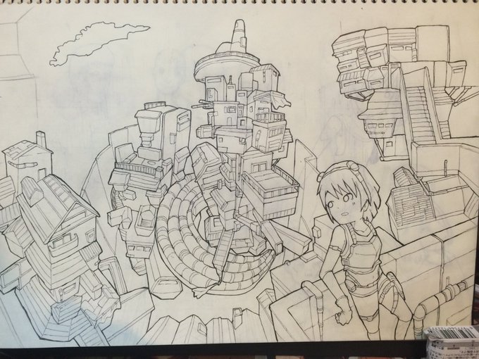 昔描いたよくわからん絵。 これを境にアナログでのペン入れ絵を描いていない気がする。 #アナログ絵 #冬の創作クラスタフォロー祭り #絵描きさんと繋がりたい #イラスト #背景