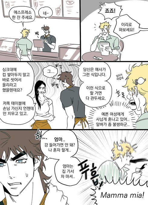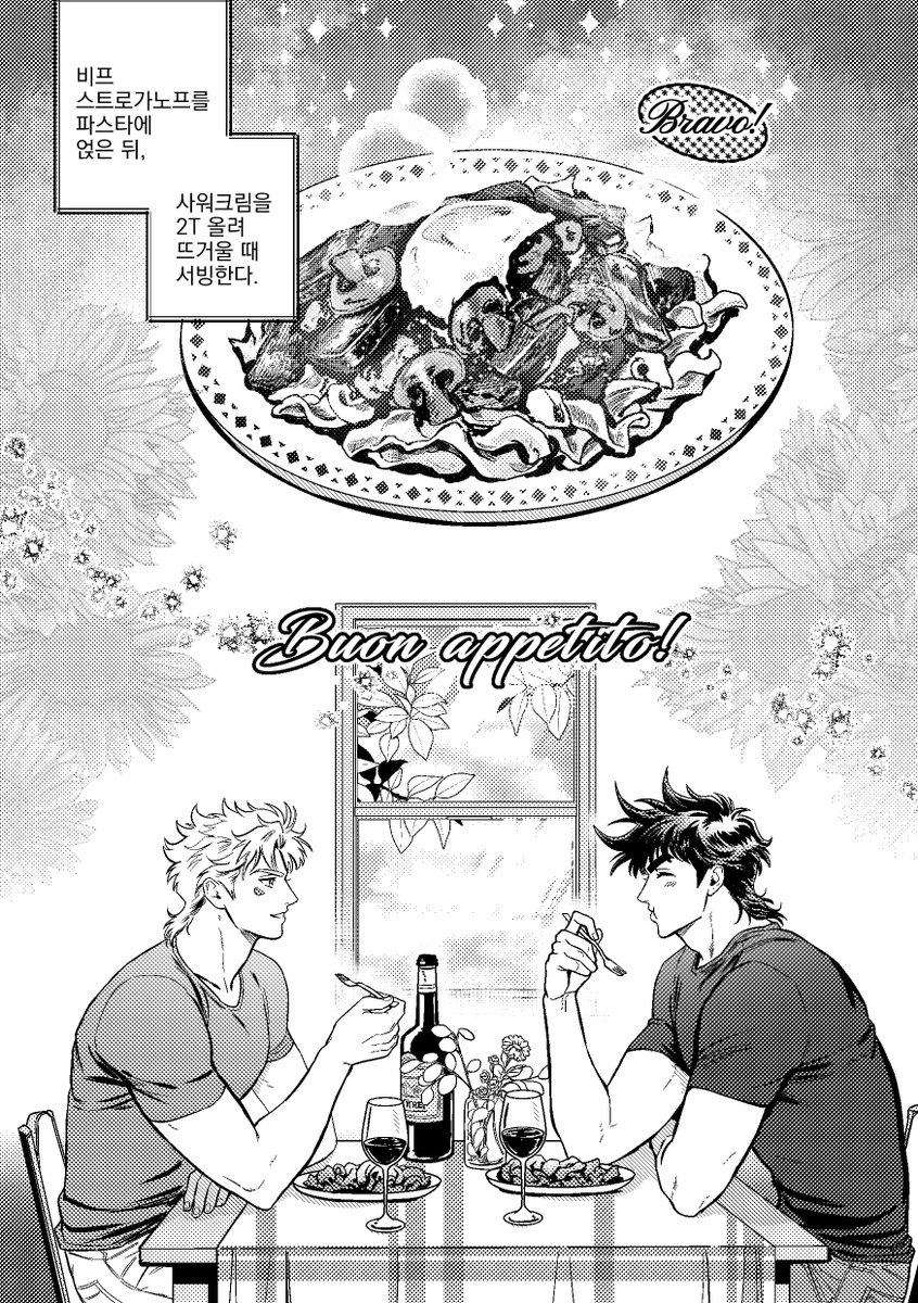 죠죠온에서 무료배포했던 시저가 요리하고 죠셉이 먹는 만화입니다~ 그림 깨지면 아래 포타에서 봐주세요! posty.pe/gnuajy