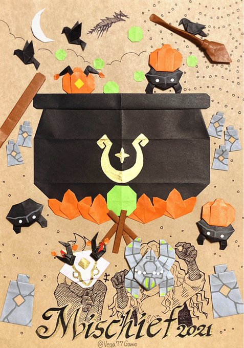 Day31 MISCHIEF 大小様々な47枚の折り紙でカチカチ蟹穴を再現してみました🎃 複合折り紙(各パーツは全て不切正方形一枚折) #Skyスプーキーランタン #いたずらな日々 #thatskygame #Sky星を紡ぐ子どもたち #skytober2021