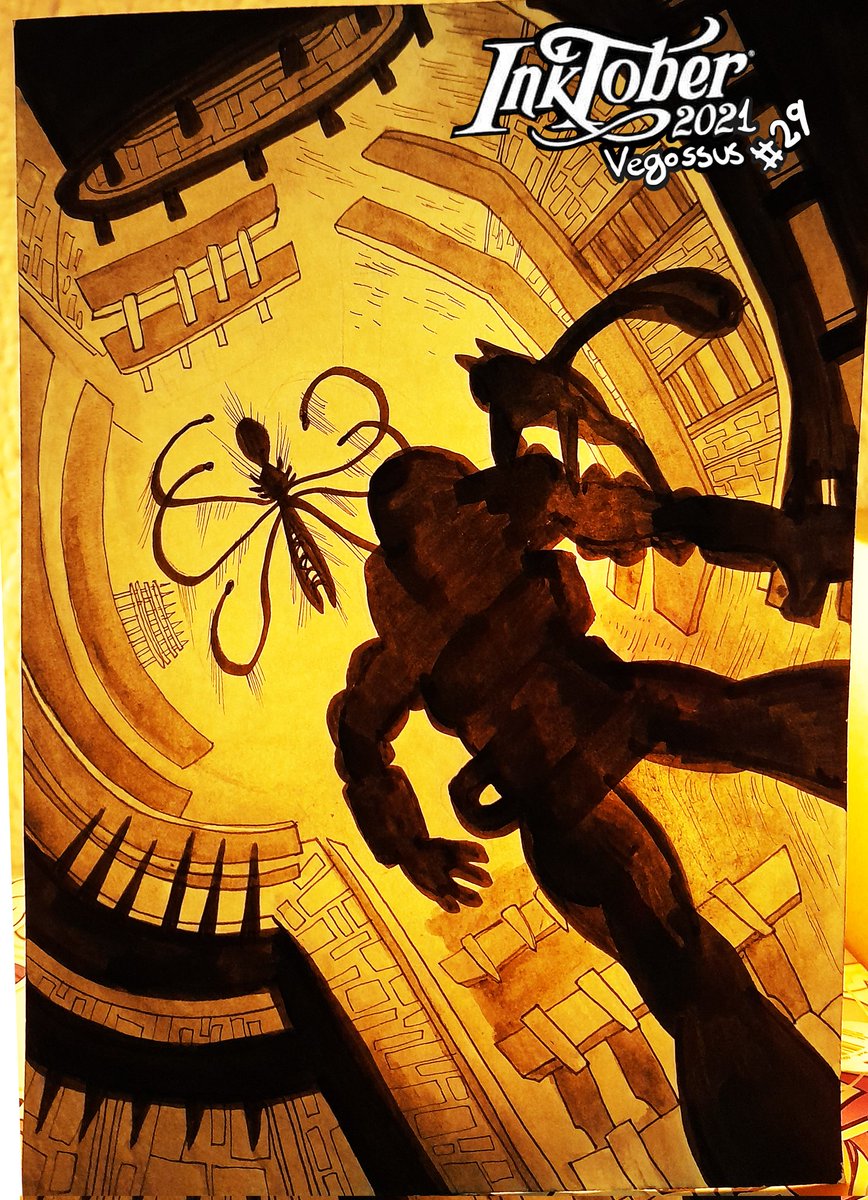 Ayer hice este Inktober y .... No me gusta.... (Así soy) así que vamos a repetir la temática a ver si sale algo mejor.Doy asco xD Proceso en el hilo👇👇👇 #inktober2022 #Inktober #Mabsdrawlloweenclub #legacyofkain #kain #umah #ink #illustration #traditionalart #veganya #vegossus