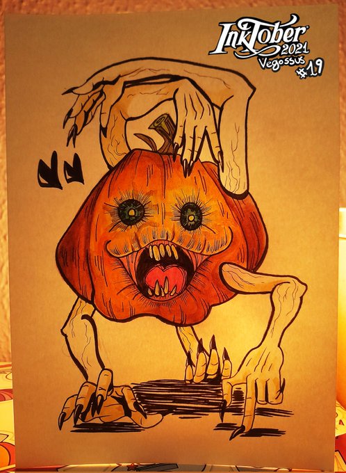 Day 19 Pumpkin 🎃 I hope you like it, support me a lot or I will have to jump on the train tracks! 🖤🚉 #mabsdrawlloweenclub #challenge #inktober2021 #inktober #pumpkin #halloween #traditionalart #veganya #vegossus
