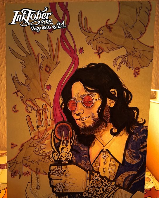 Day 21 Omen 🔮 Portrait to my dear friend Javi. I hope you like it, support me a lot or I will have to jump on the train tracks! 🖤🚉 #mabsdrawlloweenclub #challenge #inktober2021 #inktober #gothicmen #omen #traditionalart #veganya #vegossus