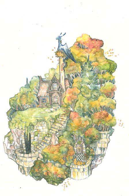 Hello everybody. My name is Vendy traditional artist. I like to draw landscapes, comfy scenerie and cute monsters 🐲 #PortfolioDay