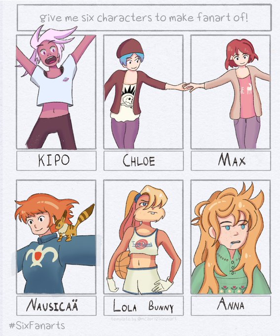 This #SixFanarts challenge was a lot of fun! Definitely drew some some characters I never would have otherwise. Thanks everyone who gave suggestions!