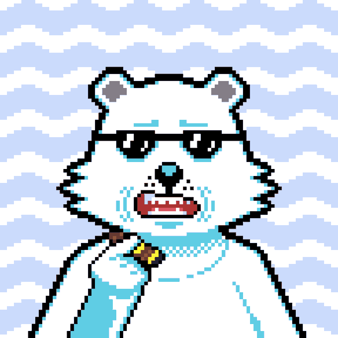 'I'm a stud, I'm ballsy, I don't take no shit from anyone. I smoke my stogie anywhere I want, I don't have to find a hideout place like you!' Polar bear chad for #pixel_dailies ice climbers #PixelRemaster . @Pixel_Dailies #pixelart #ドット絵
