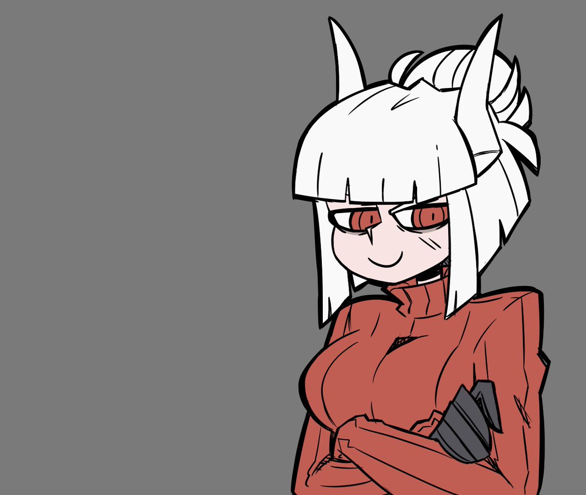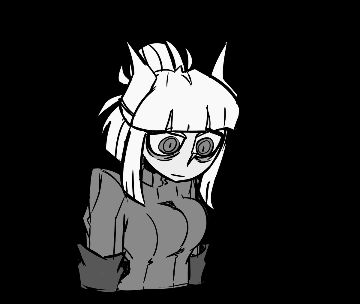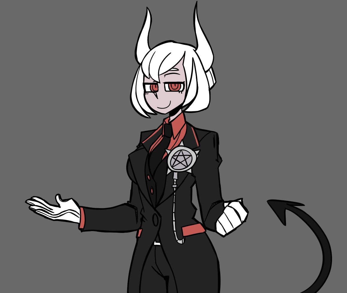 Satan ..something, i didn't come up with a title yes, it is one of vanripper's concept arts for Lucifer, but it looks so unique, but perhaps i'll change a thing or two for more originality also, i kept her suit in a darker palette, feels cooler #Helltakerfanart #Helltaker