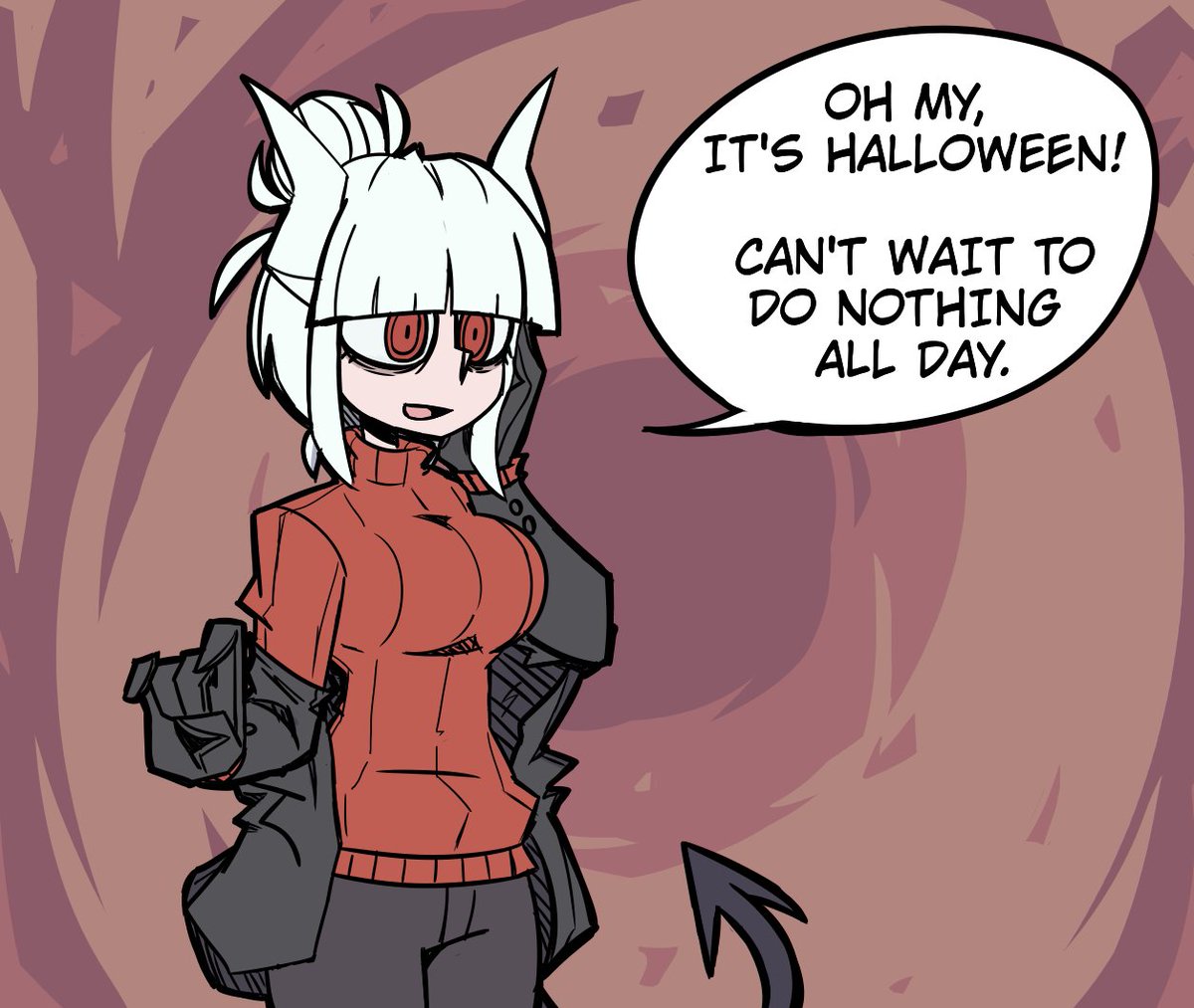 my only halloween art, starring Belphegor, the Slothful Demon hope y'all like it, happy halloween. #Helltaker #Helltakerfanart #OC #originalcharacter