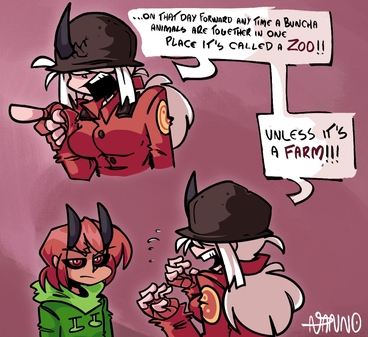 stream art- just kidding, i don't stream... be a lot cooler if i did though. fox envi, chaos and emirath (ft. cute doggo) art #Helltakerfanart #OC