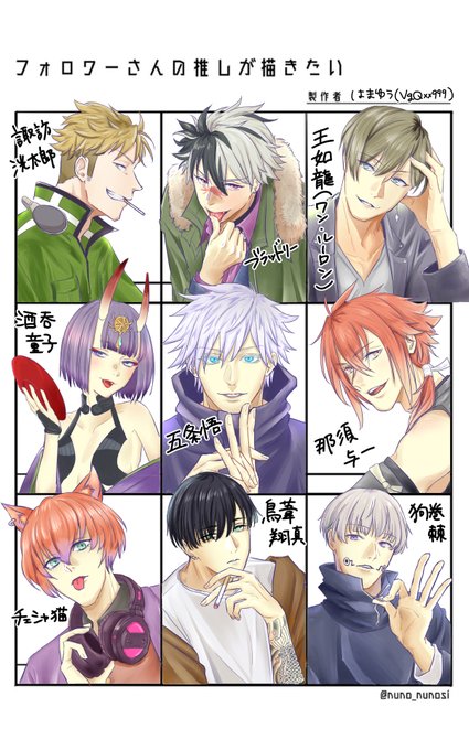 時間かかっちゃってすみません! 第1弾できましたー! (未履修の作品もあったので解釈違い等あるかと思いますがご容赦ください…。) リクエストありがとうございました!!! #フォロワーさんの推しが描きたい