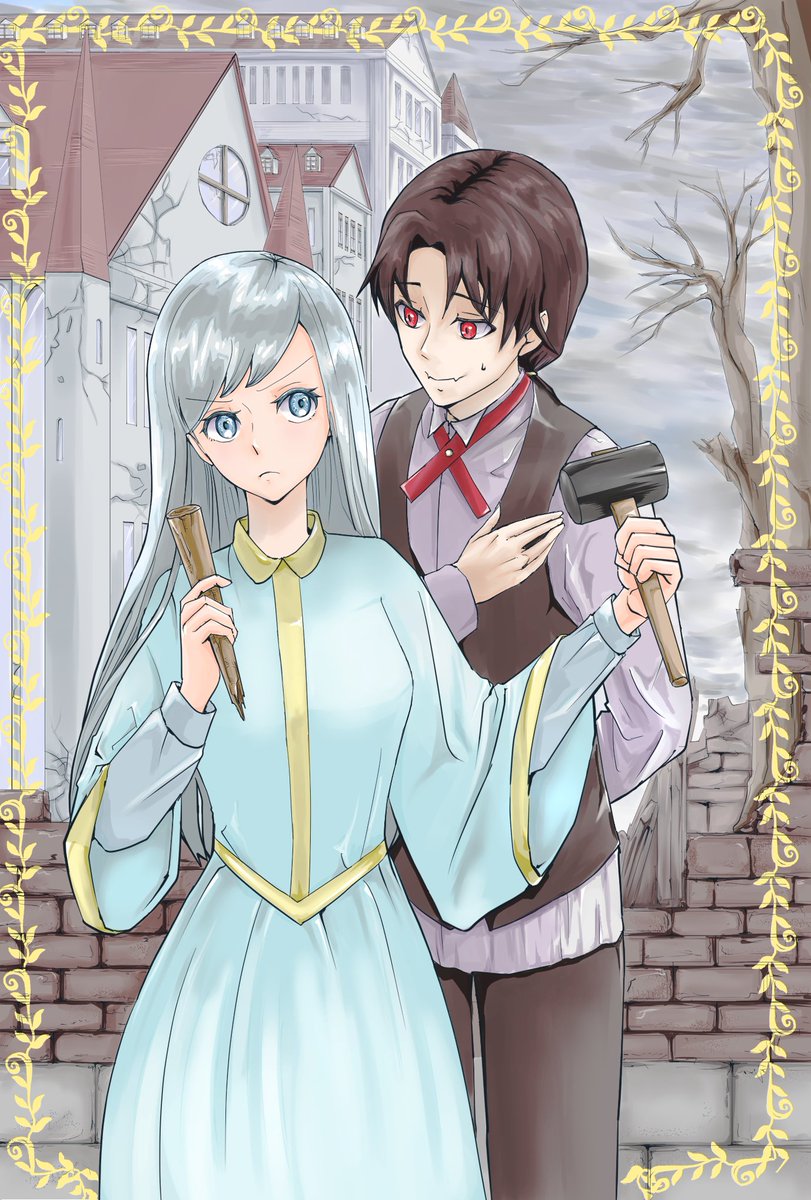 ノベルの表紙っぽいイメージで描きました😃 狙った娘が強くて困っているヴァンパイア。 #イラスト #創作