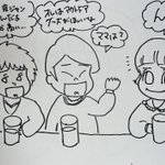 【ママの4コマ劇場139】 「豆乳が止まらない」の巻 スタバ、コーヒー豆乳割り、豆乳割り 「豆乳三兄弟」が人気沸騰中❣️ #漫画が読めるハッシュタグ #4コマ漫画 #漫画 #ViVAのお客さま以外の人が読むのはきびしい #漫画というより落描きでごめんね🙇