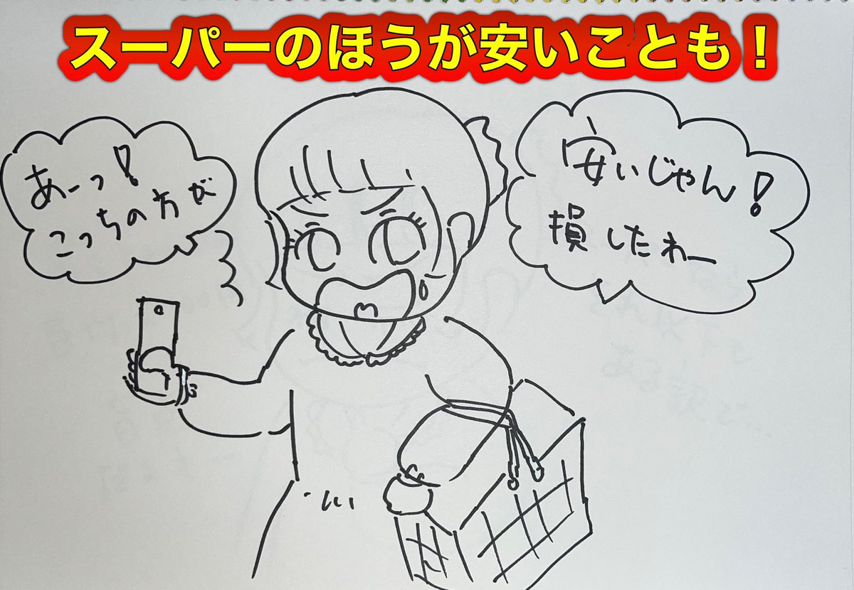 【ママの4コマ劇場 63】 「スーパーをチェックせよ」の巻 #漫画が読めるハッシュタグ #4コマ漫画 #漫画 #ViVAのお客さま以外の人が読むのはきびしい #漫画というより落描きでごめんね 🙇♀️